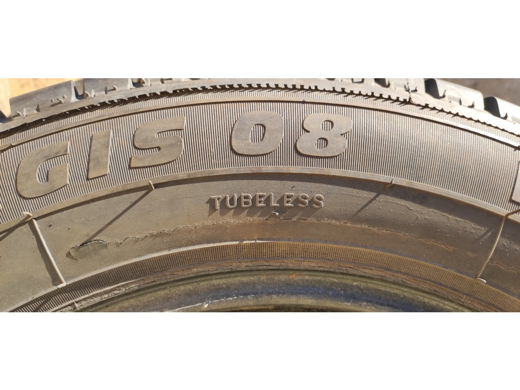 1 pneu poškozená na boku viz foto.